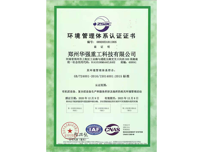環(huán)境管理體系認(rèn)證證書(shū)