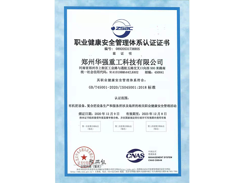 職業(yè)健康安全管理體系認(rèn)證證書(shū)